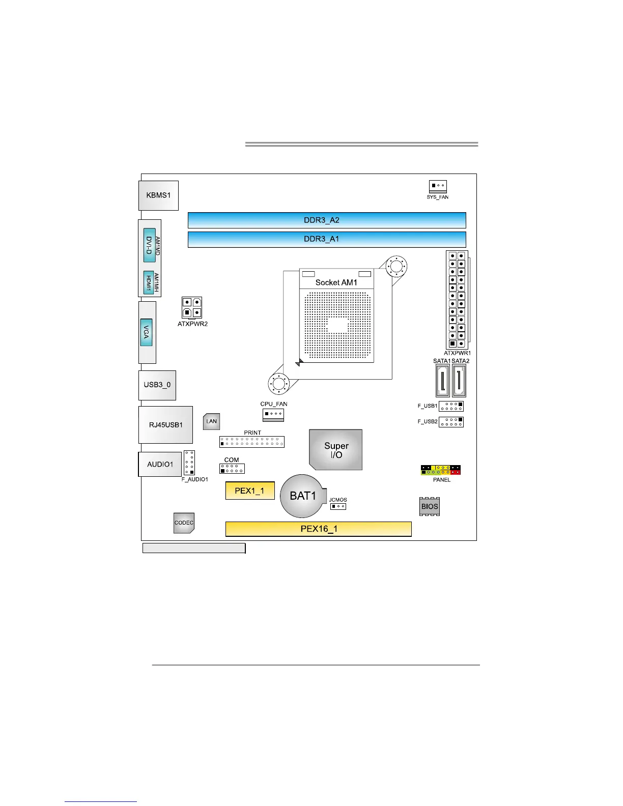 Biostar AM1MD - Motherboard Layout