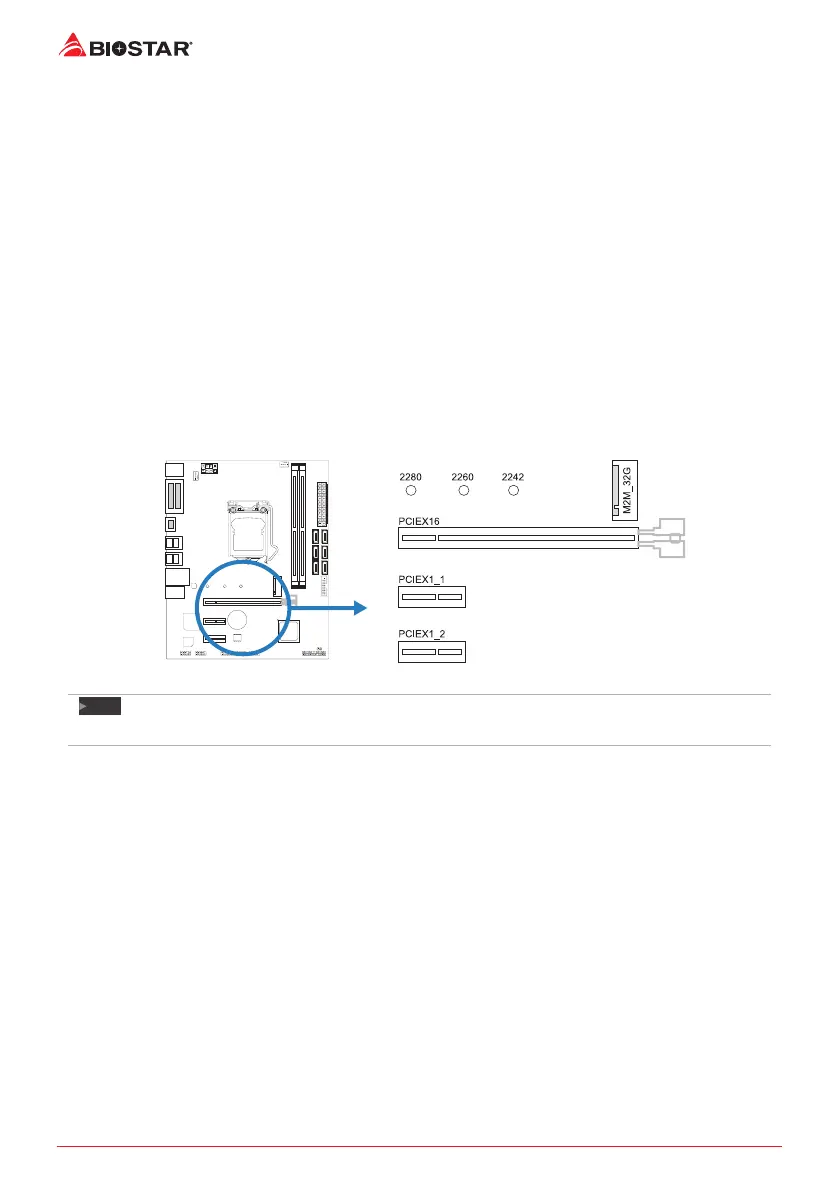 • The M.2 slot supports M.2 Type 2242/2260/2280 SSD module. When installing M.2 SSD