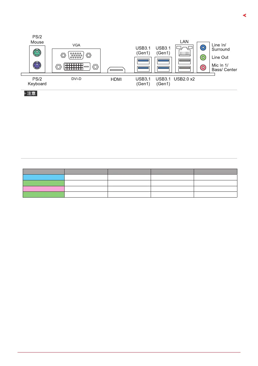 草绿色 (前置面板) 耳机 后置声道输出 后置声道输出 后置声道输出