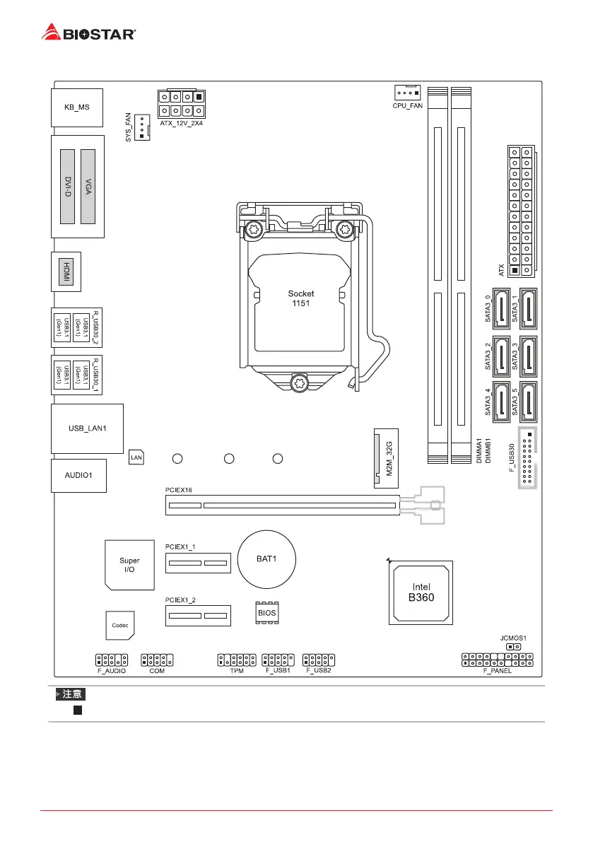 Biostar B360M D2V - 主板布局图
