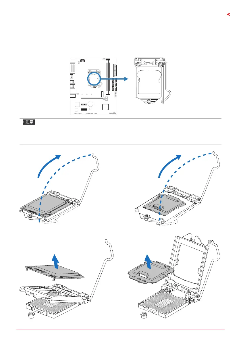 主板可能配有两种不同的针脚保护盖请参照以下示取掉保护盖
