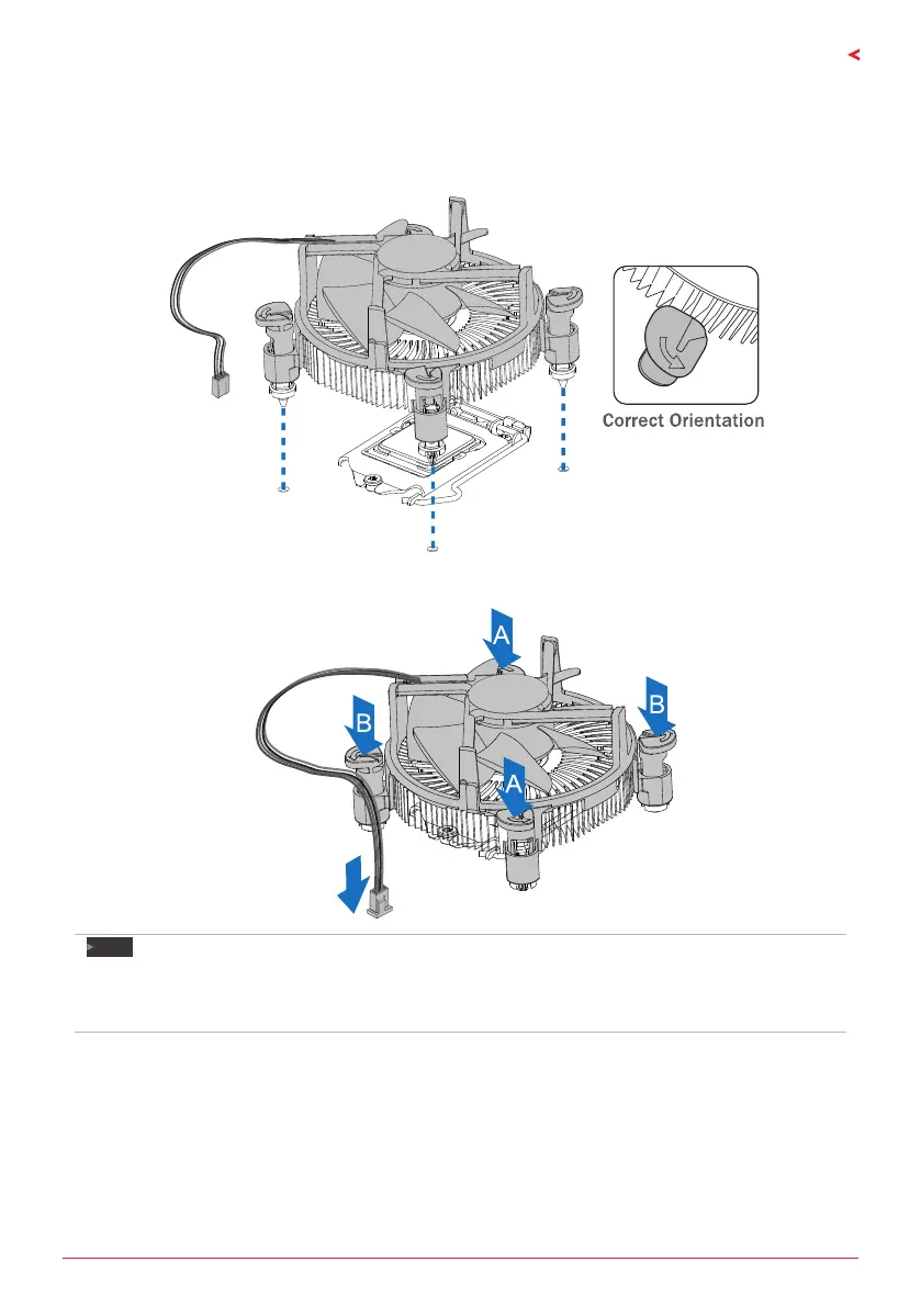 Step 2: Press down two fasteners at one me in a diagonal sequence to secure the CPU fan