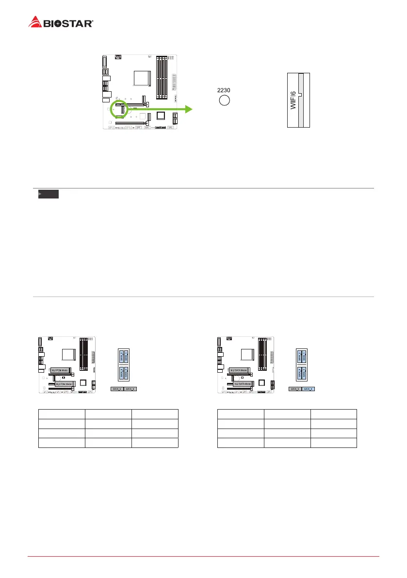 When M.2 Slot is installed with PCIe or SATA SSD mode interface, the usage status of SATA