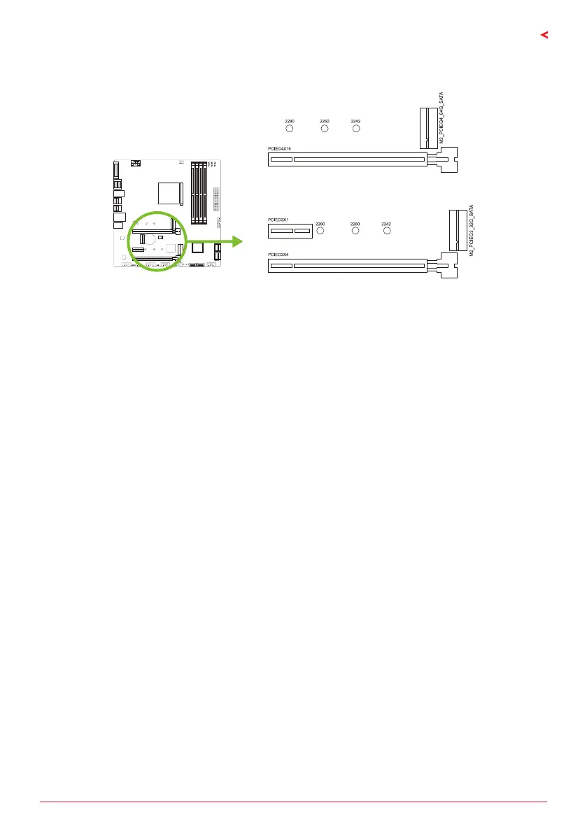 • Слот M.2 поддерживает модуль SSD 2242/2260/2280 типа M.2. При установке