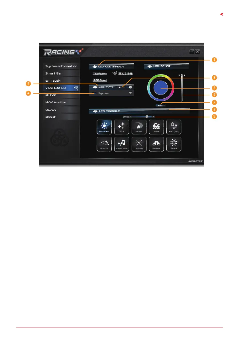 6� Полоса яркости светодиодов: позволяет регулировать яркость светодиодов.