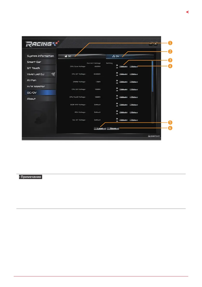 Вкладка <OC/OV> позволяет сохранять или загружать профили настроек OC/OV,