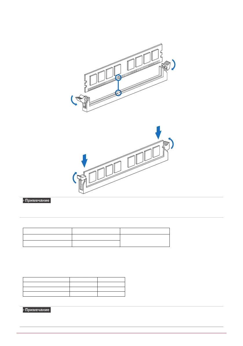 Устанавливайте модули памяти одинаковой плотности попарно, как показано в таблице.
