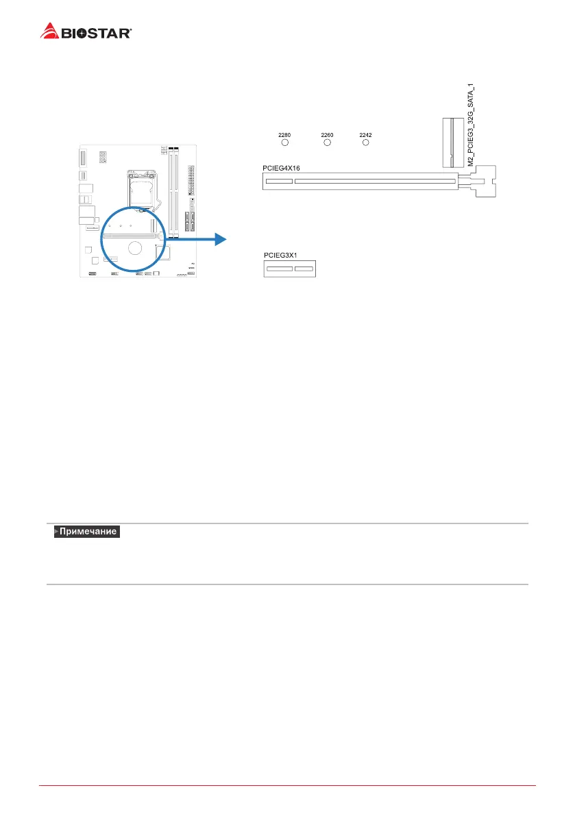 • Слот M.2 поддерживает модуль SSD 2242/2260/2280 типа M.2. При установке