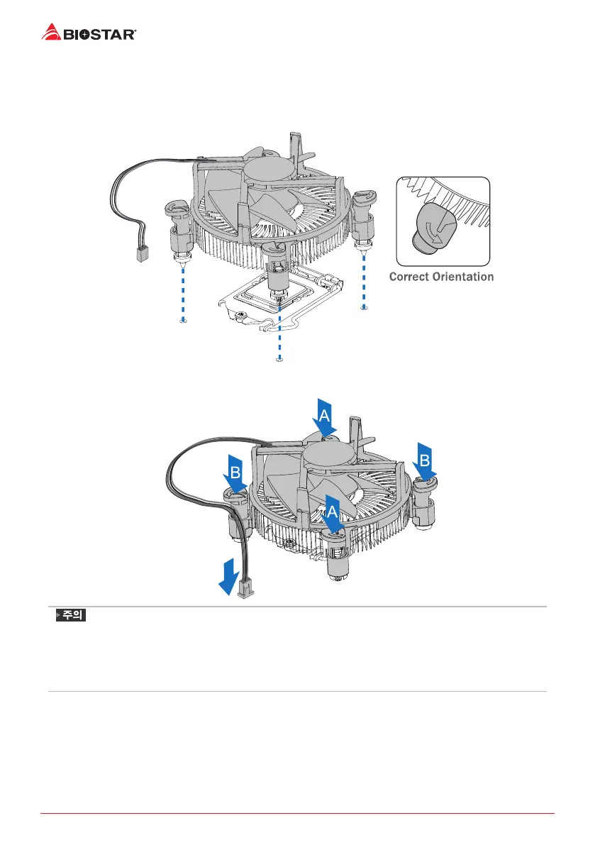 적합한 설치를 위해, CPU 쿨러 설치 설명서를 부디 참조해 주십시오.