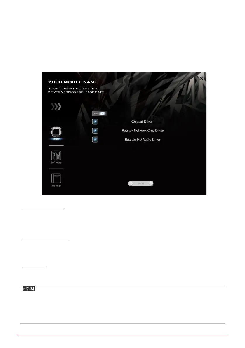 마더보드, 운영 체제와 호환되는 드라이버 리스트를 표시합니다. 설치 프로그램을