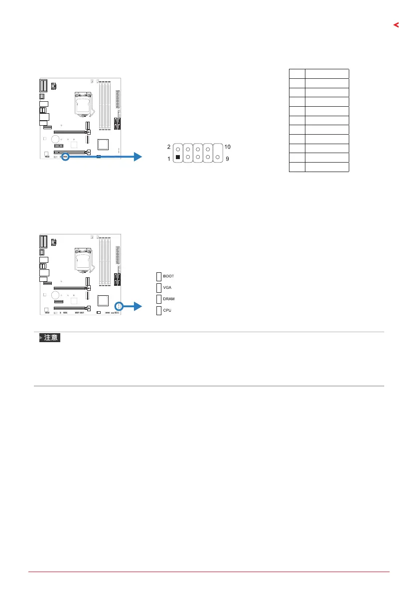 當電腦準備就緒時LED指示燈將顯示錯誤發生的位置並持續亮著直到問題解決