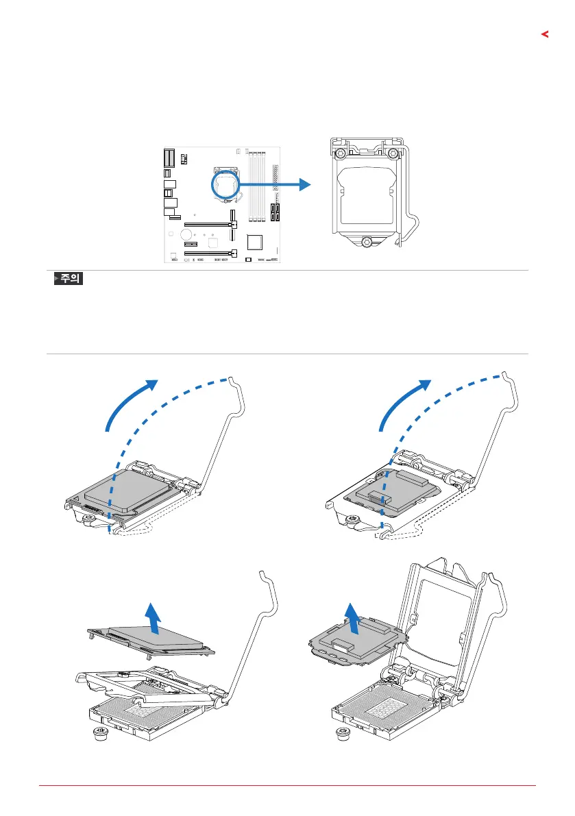 » 설치 전에 핀 보호 커버를 제거하고, 추후 사용을 위해 잘 보관하시기 바랍니다. CPU를 제거