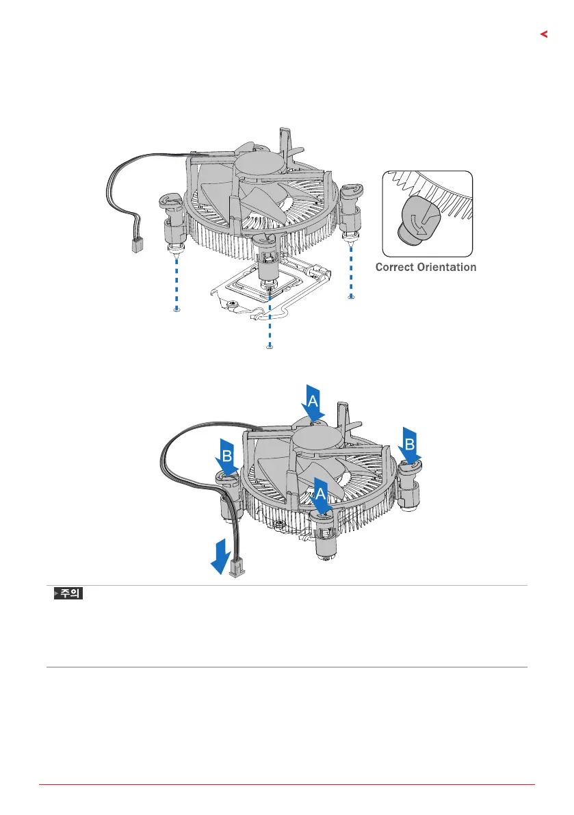 적합한 설치를 위해, CPU 쿨러 설치 설명서를 부디 참조해 주십시오.