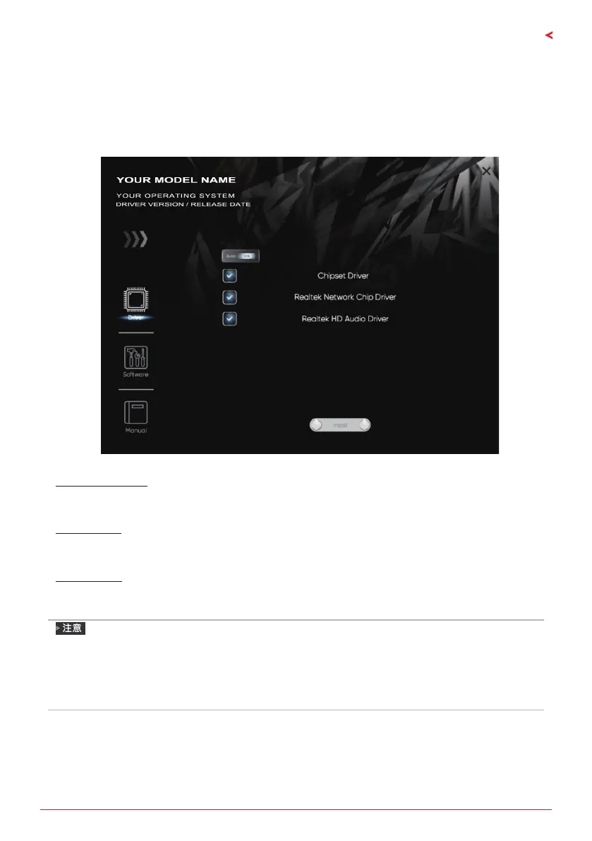 安裝驅動程式,請點擊Driver圖示。設定指南將自動檢測您的主板和操作系統。點擊各