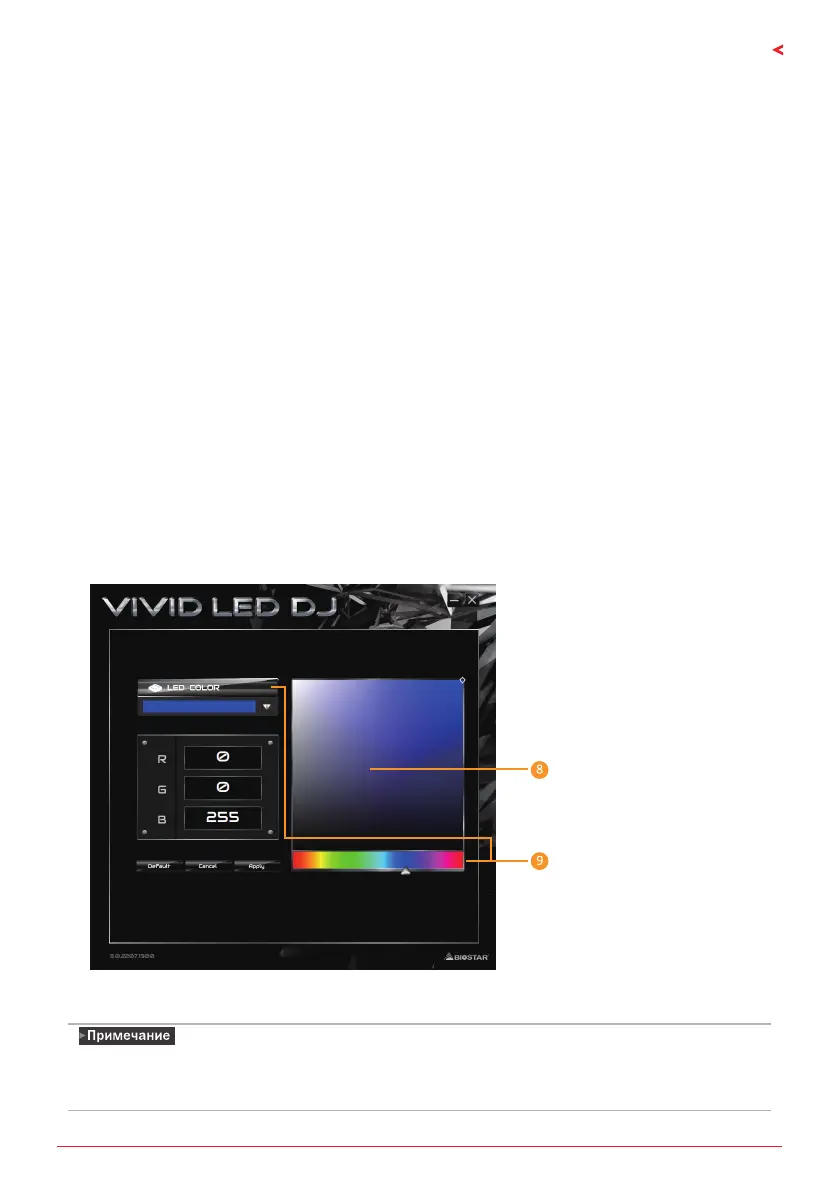 8� Полоса яркости светодиодов: позволяет регулировать яркость светодиодов.