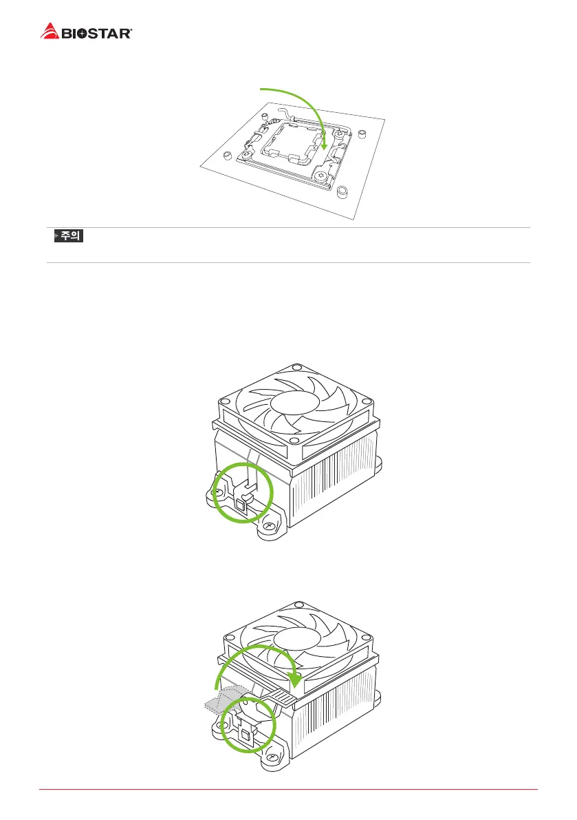 다음 팬과 방열판을 받침대 베이스에 걸어 고정시킵니다.
