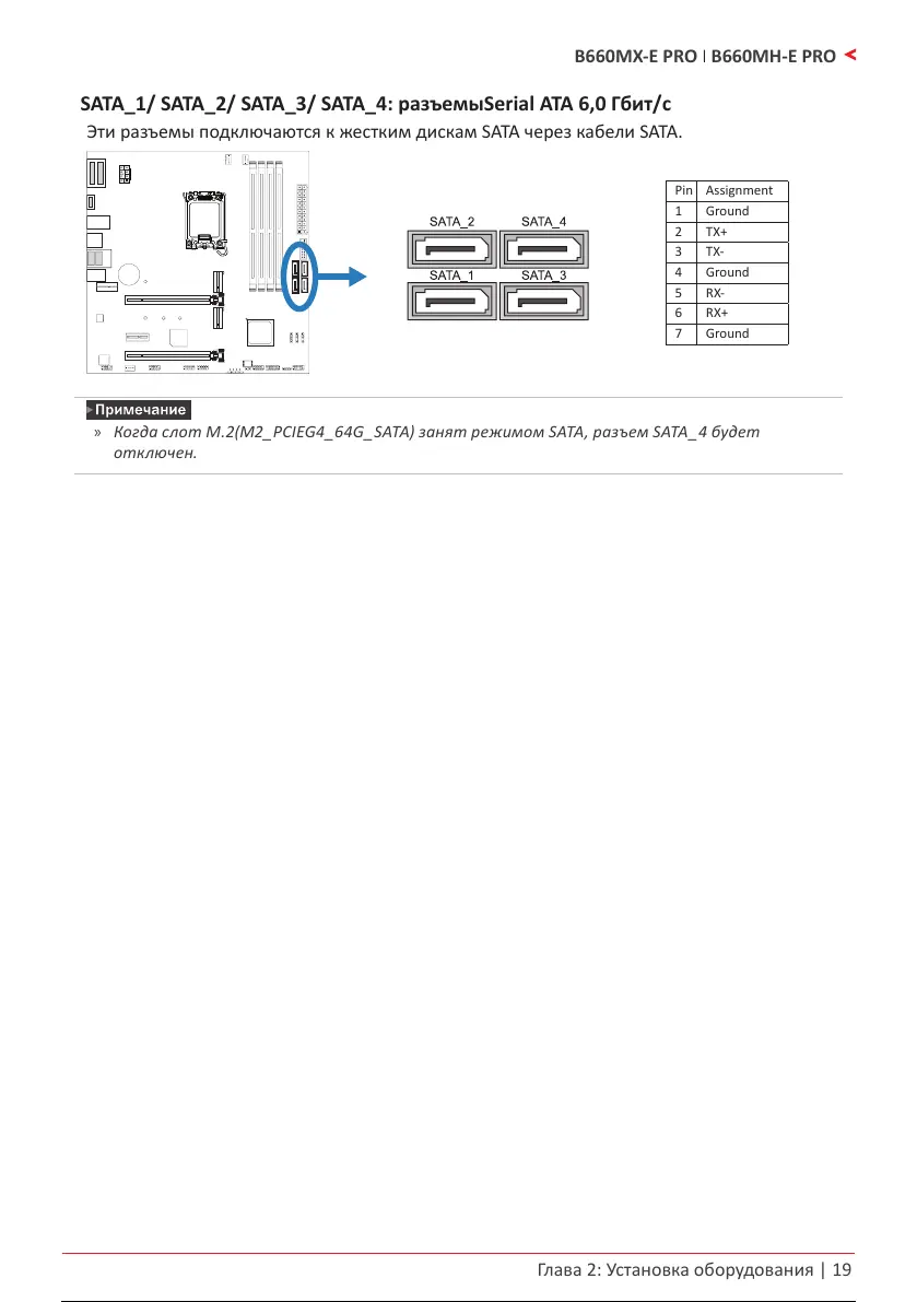 Когда слот M.2(M2_PCIEG4_64G_SATA) занят режимом SATA, разъем SATA_4 будет