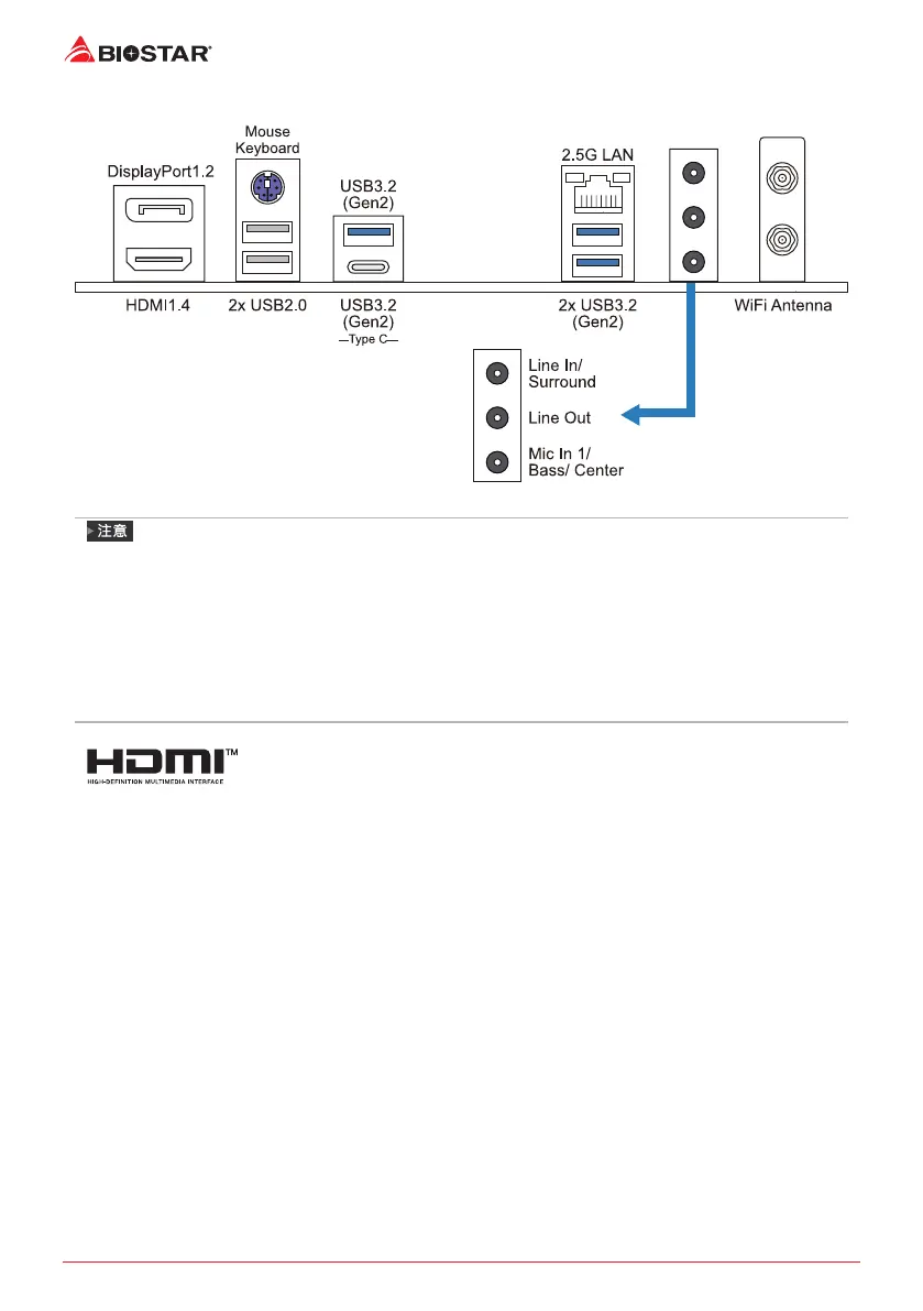 當使用前置HD音效插孔並插入耳機/麥克風時,後置聲音將自動禁用。