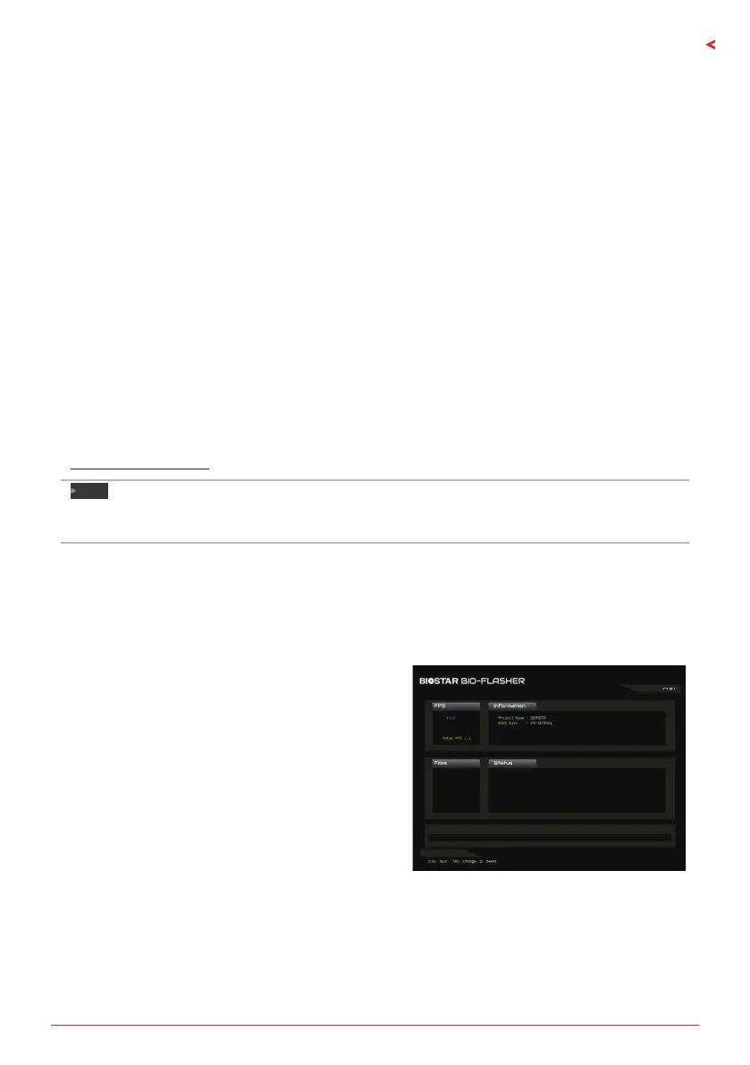 • BIOSTAR BIO-Flasher: Using this ulity, the BIOS can be updated from a le on a hard