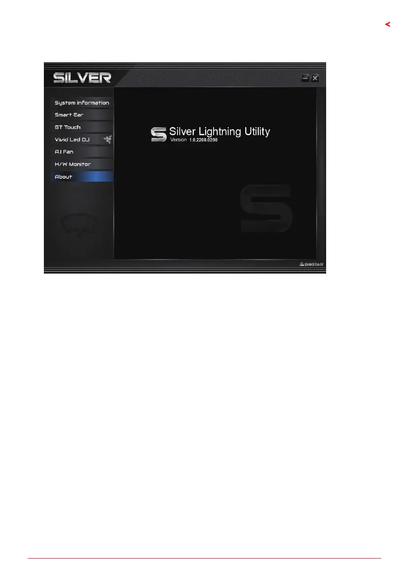 The About menu to display the SILVER LIGHTNING Ulity version informaon.