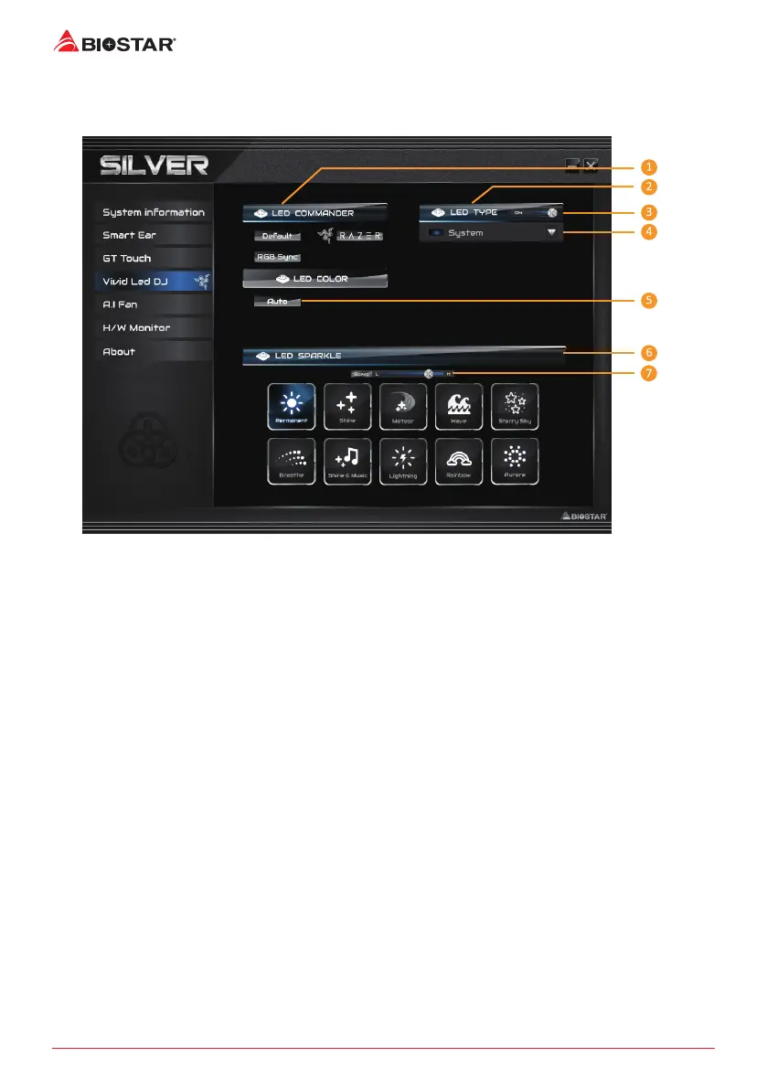 1� LED COMMANDER (Управление светодиодами): позволяет выбрать режим