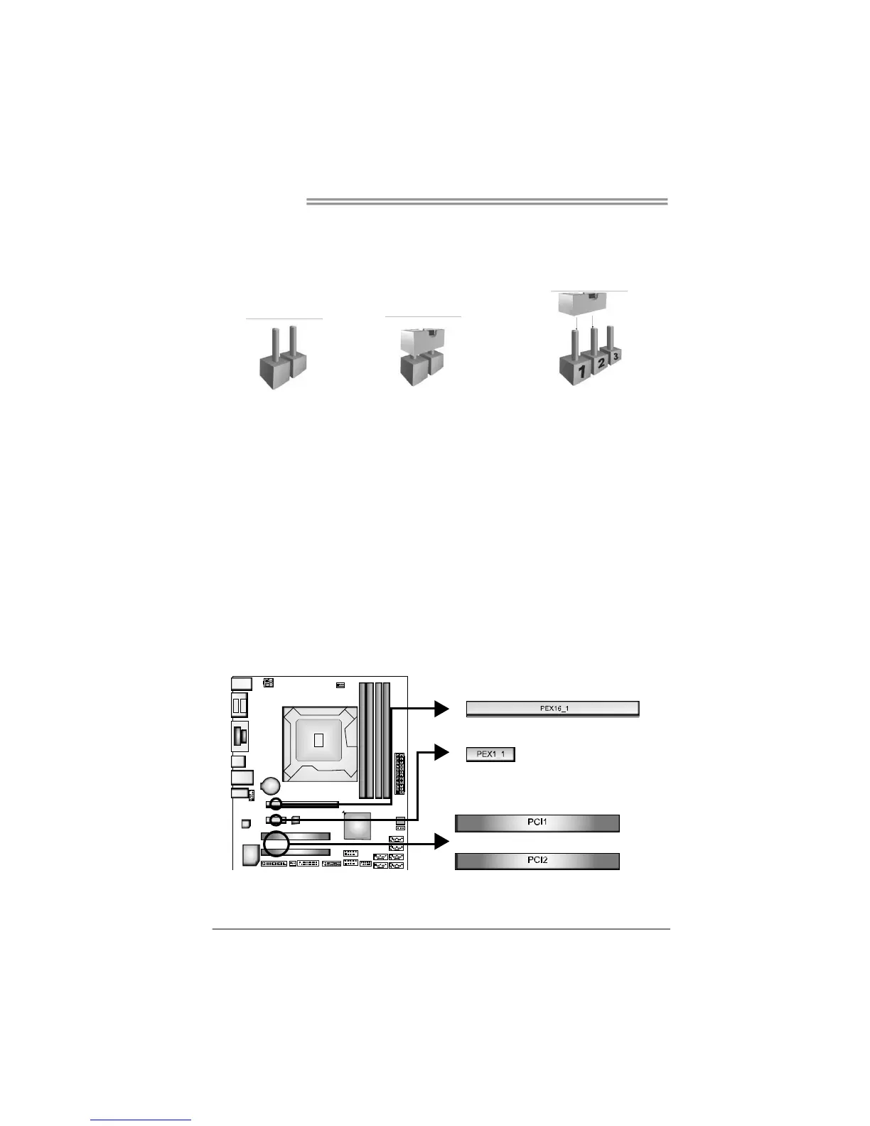 The illustration shows how to set up jumpers. When the jumper cap is placed on