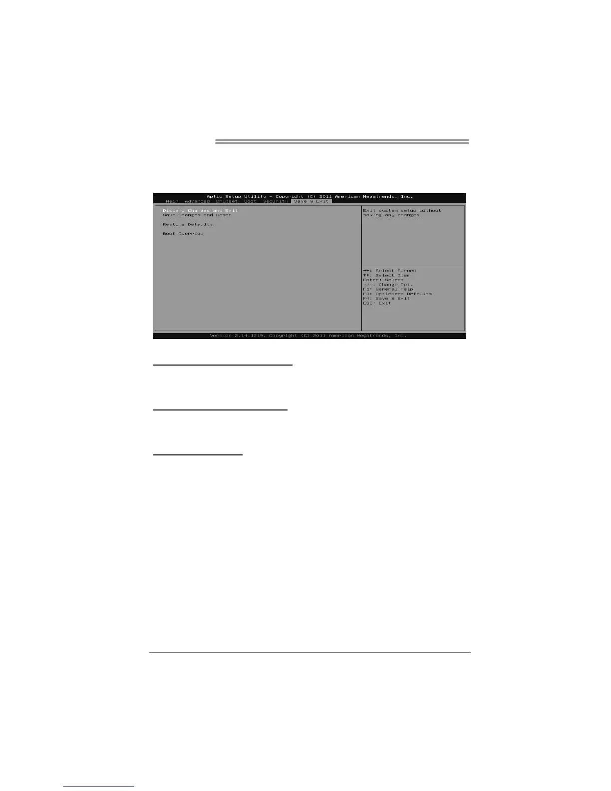 Abandon all changes made during the current session and exit setup.