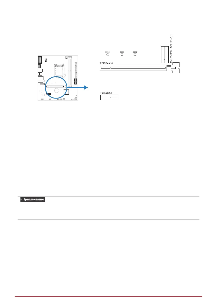 • Слот M.2 поддерживает модуль SSD 2242/2260/2280 типа M.2. При установке