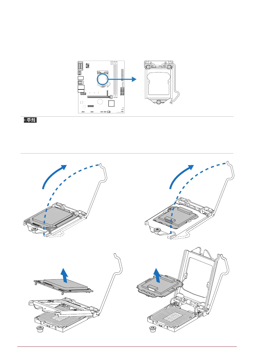 » 치 전에 핀 보호 커버를 제거고, 추후 사용을 위해 잘 보관하기 바랍니다. CPU를 제