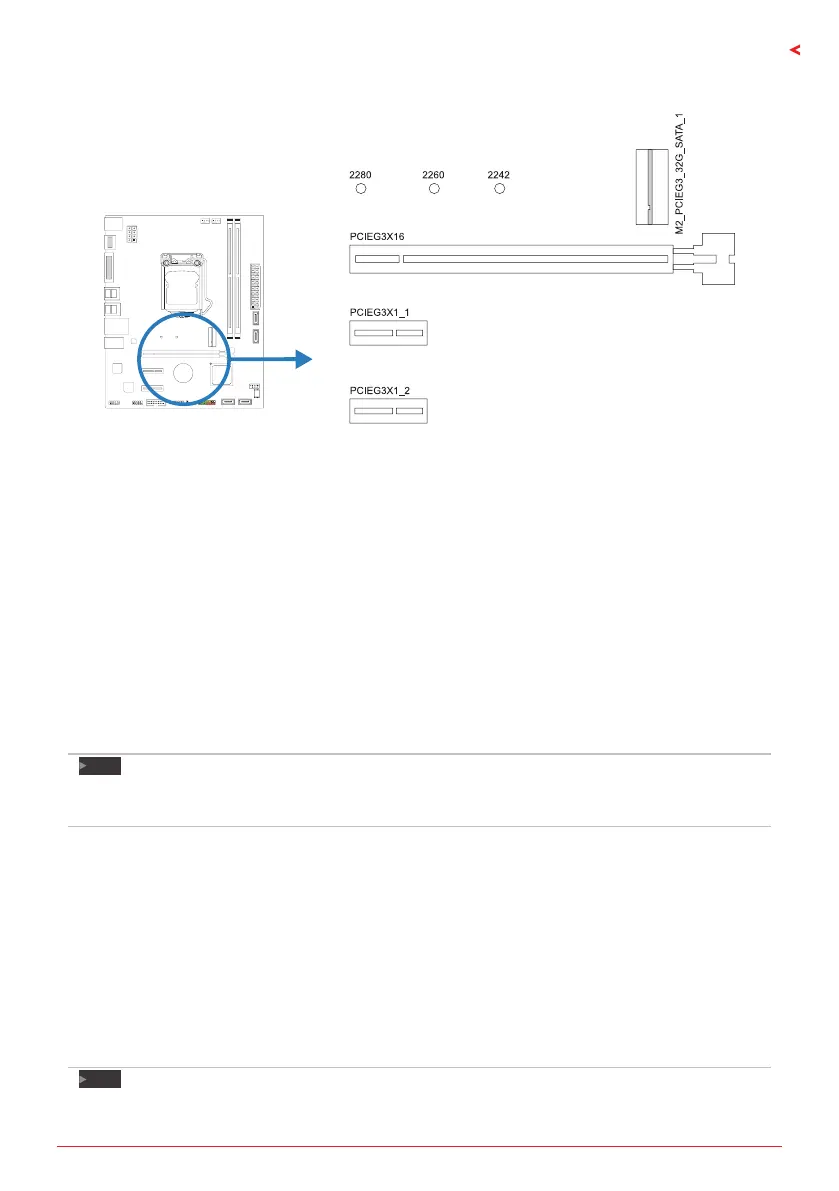 • The M.2 slot supports M.2 Type 2242/2260/2280 SSD module. When installing M.2 SSD