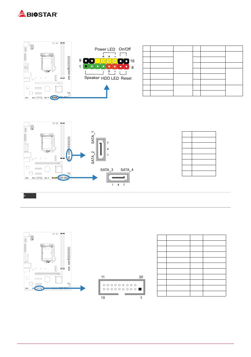 This 16-pin header includes Power-on, Reset, HDD LED, Power LED, and speaker connecon.