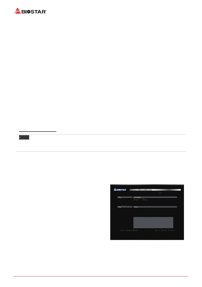 • BIOSTAR BIO-Flasher: Using this ulity, the BIOS can be updated from a le on a hard