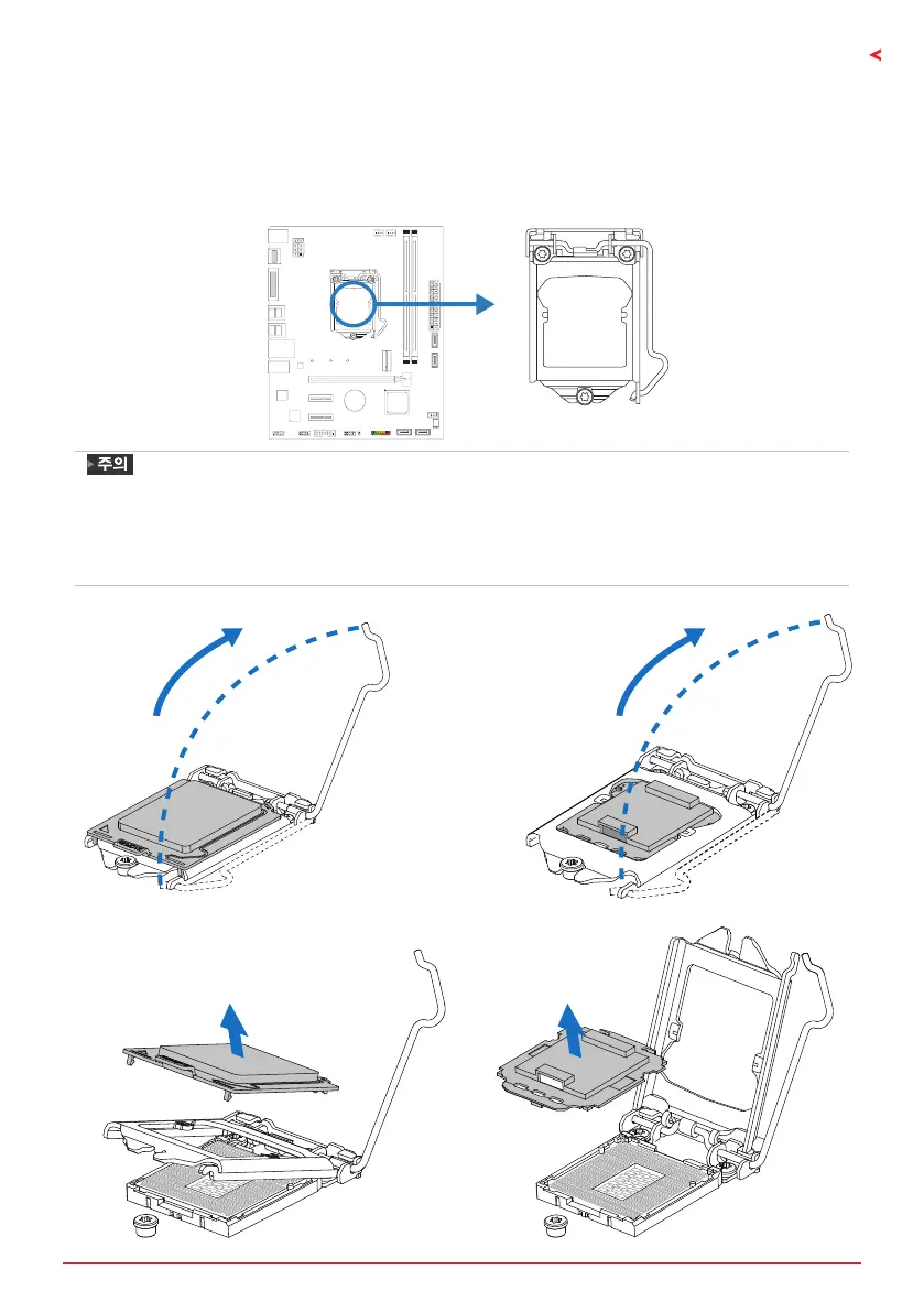 » 설치 전에 핀 보호 커를 제거하고, 추후 사용을 위해 잘 보관하시기 바. CPU를 제