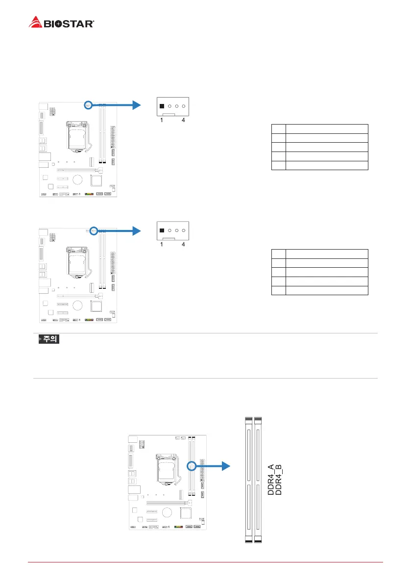 » CPU_FAN1/ SYS_FAN1 은4-pin과3-pin 헤드 커넥터를 지원합니다. 커넥터에 전선을 연결할