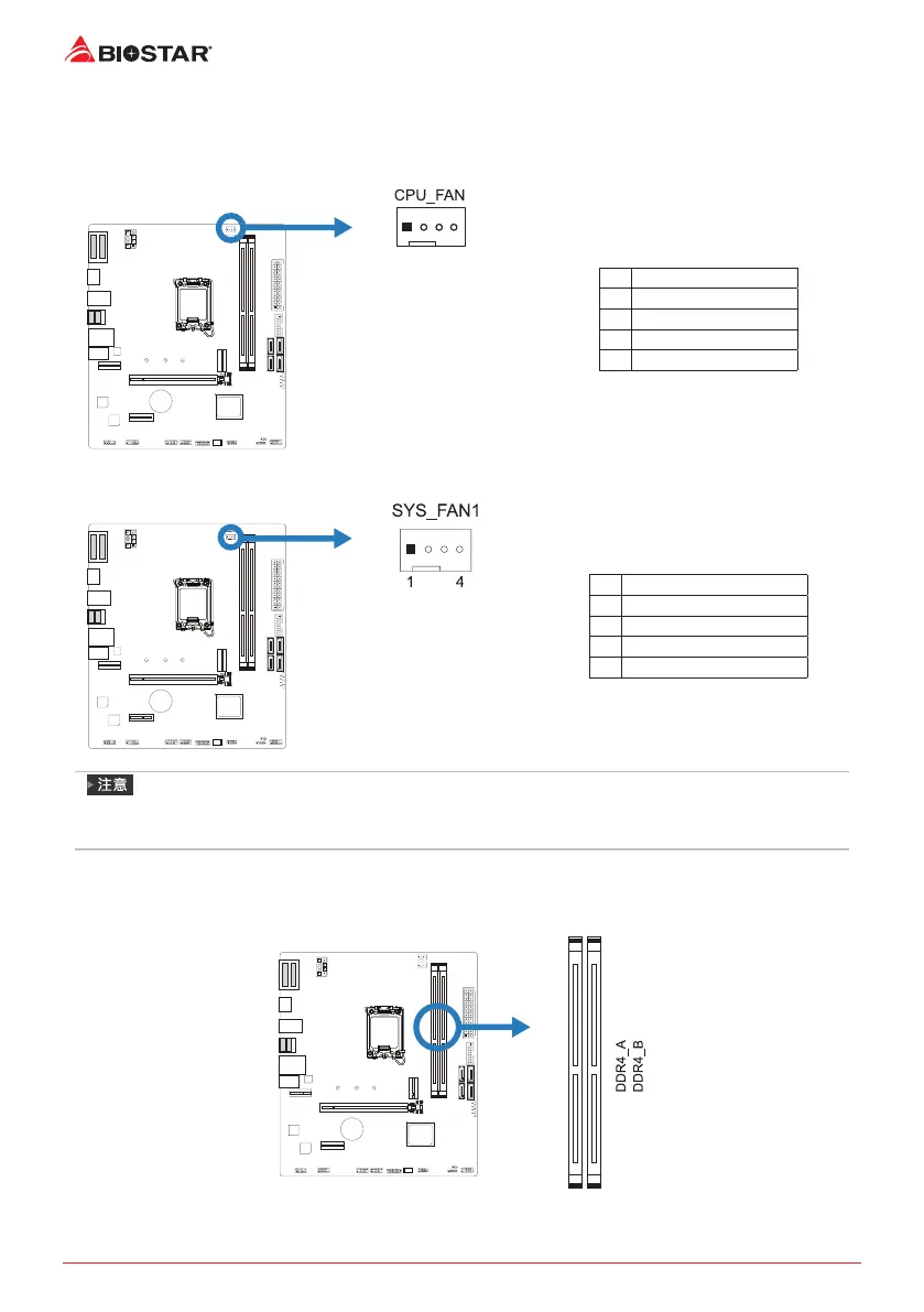 CPU_FANSYS_FAN1支援4個針腳和3針腳接頭線時請注意紅線是正級需接到第二個針