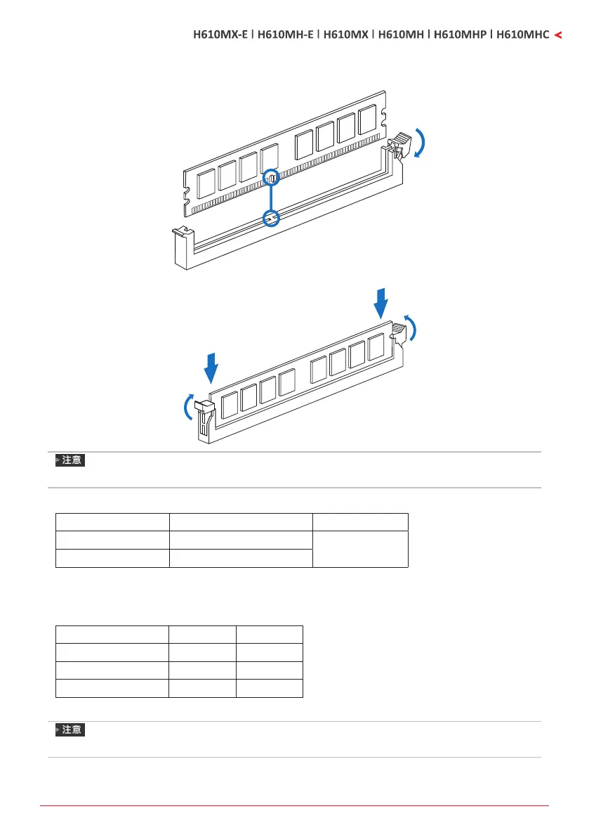 (“O”表示記憶體已安裝,“X ”表示記憶體未安裝。)