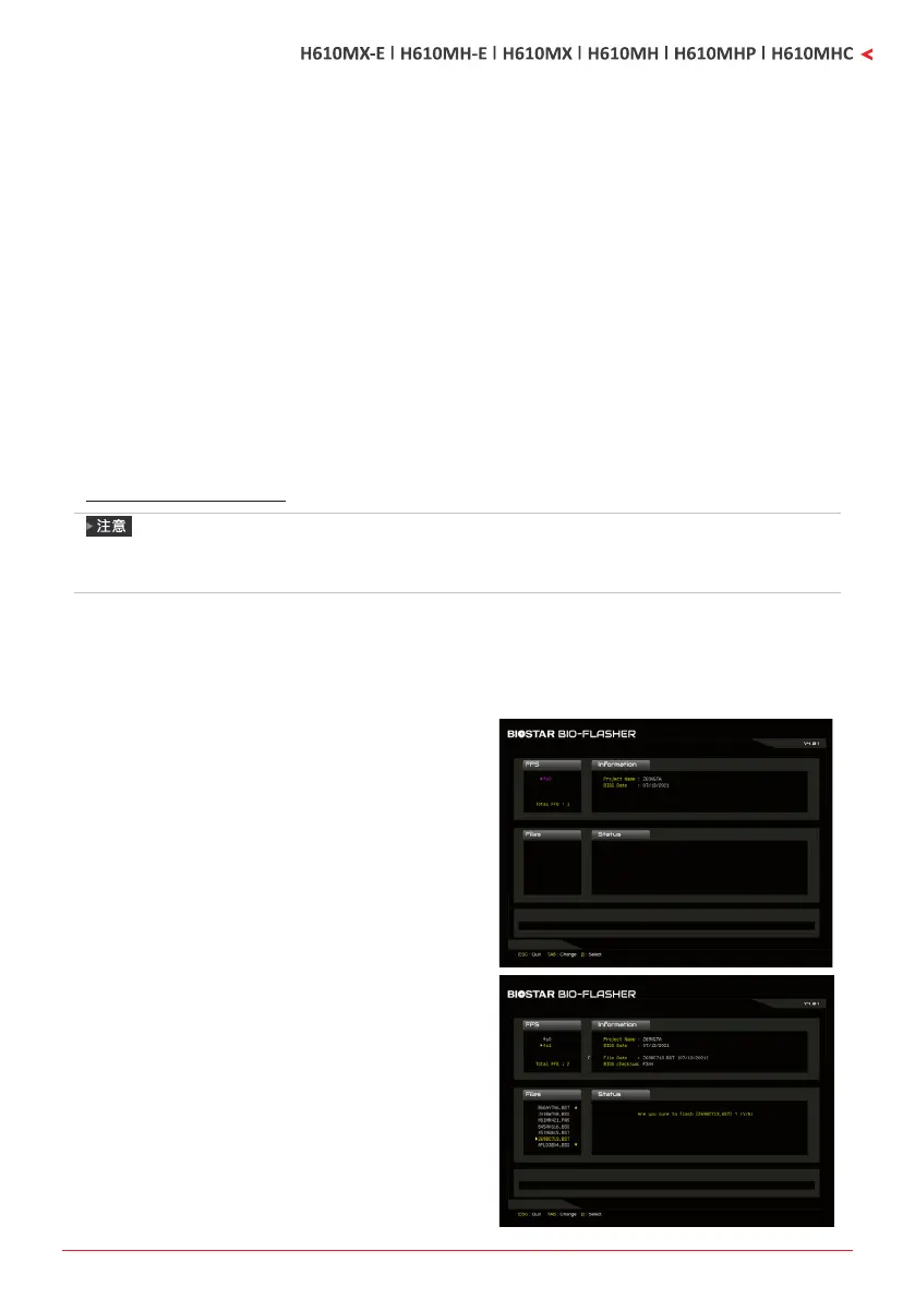 • BIOSTAR BIO-Flasher: 使用此工具,BIOS可透過硬碟上的檔案更新、USB驅動更新