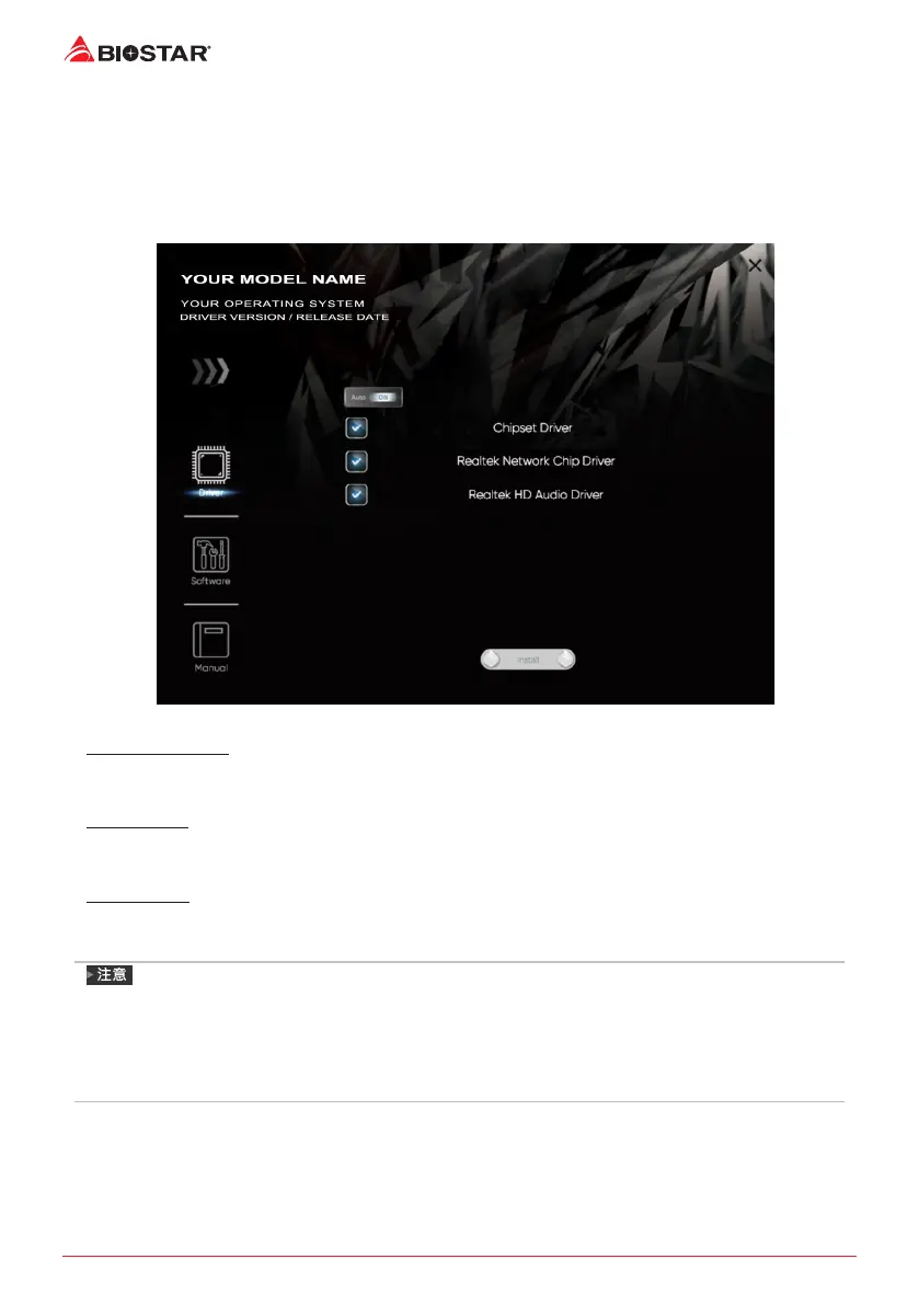 安裝驅動程式,請點擊Driver圖示。設定指南將自動檢測您的主板和操作系統。點擊各