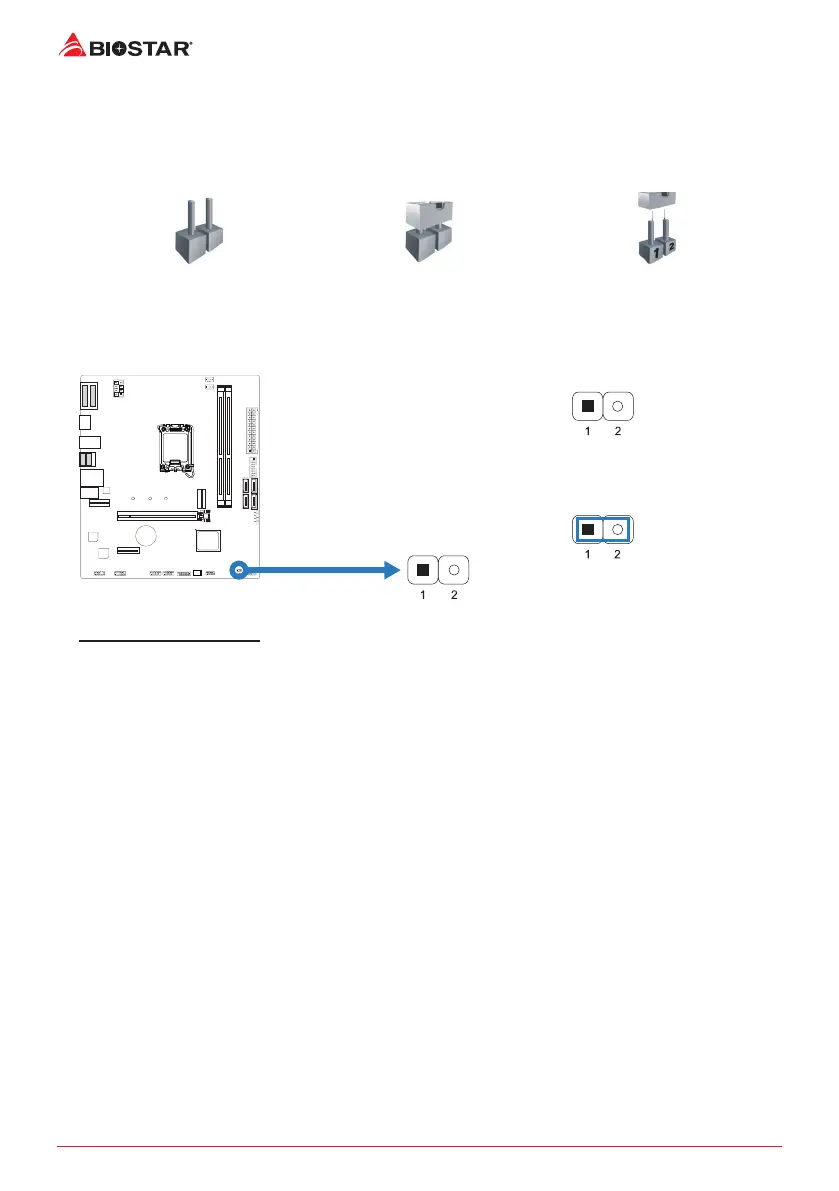 2. Set the jumper to “Pin 1-2 short”, you can use a metal object like a screwdriver to touch
