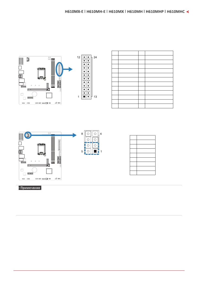 Разъем обеспечивает +12 В в цепи питания ЦП. Если разъем питания ЦП 4-контактный,