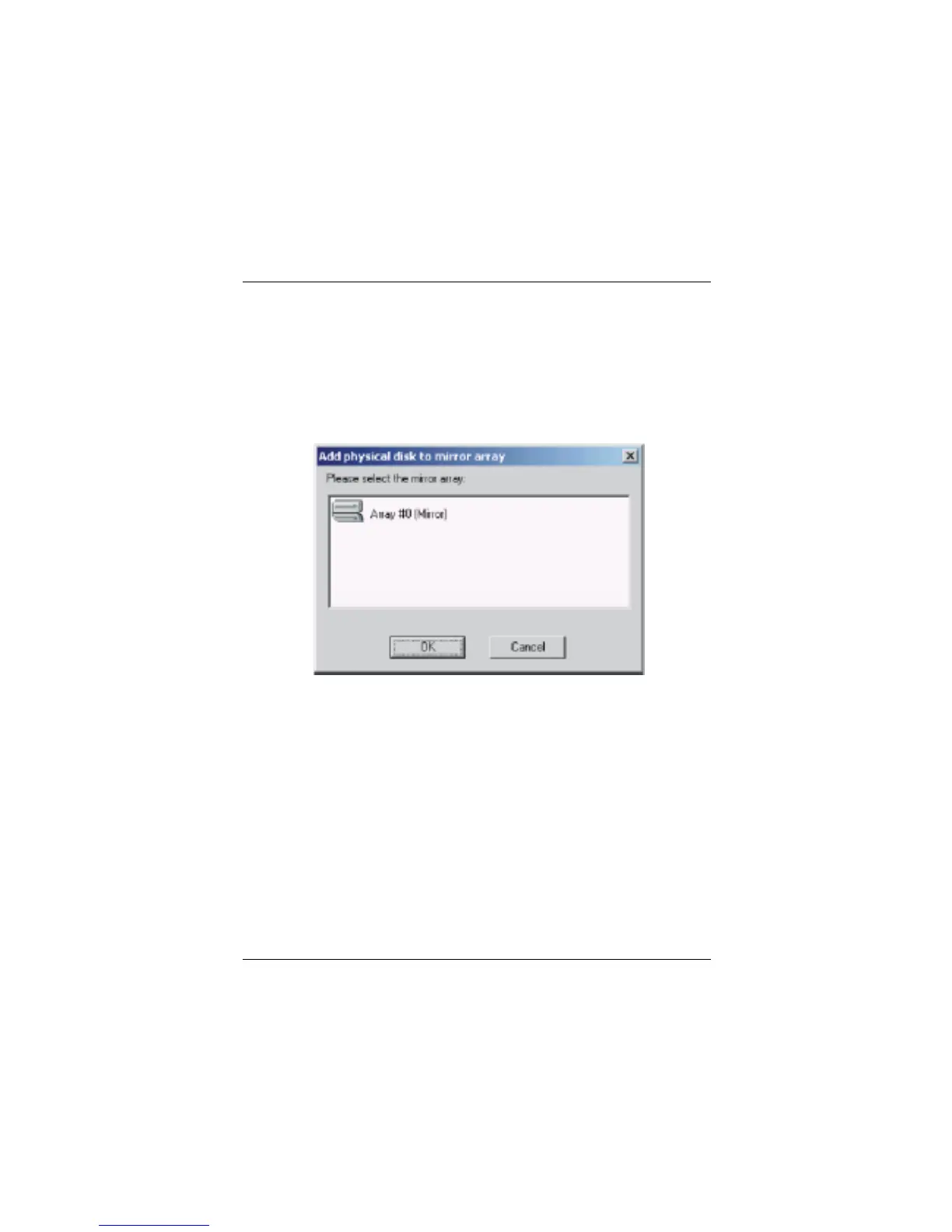 Select OK to add it into the failed mirror array, the newly plugged hard disk