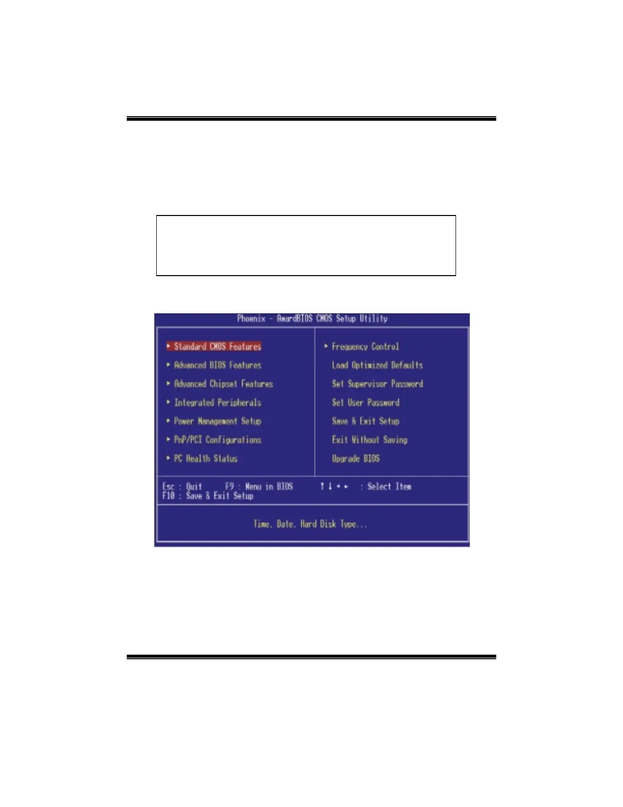 Once you enter Award BIOS™ CMOS Setup Utility, the Main Menu will appear on the