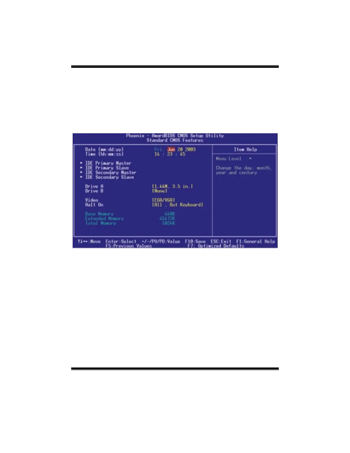 The items in Standard CMOS Setup Menu are divided into 10 categories. Each category