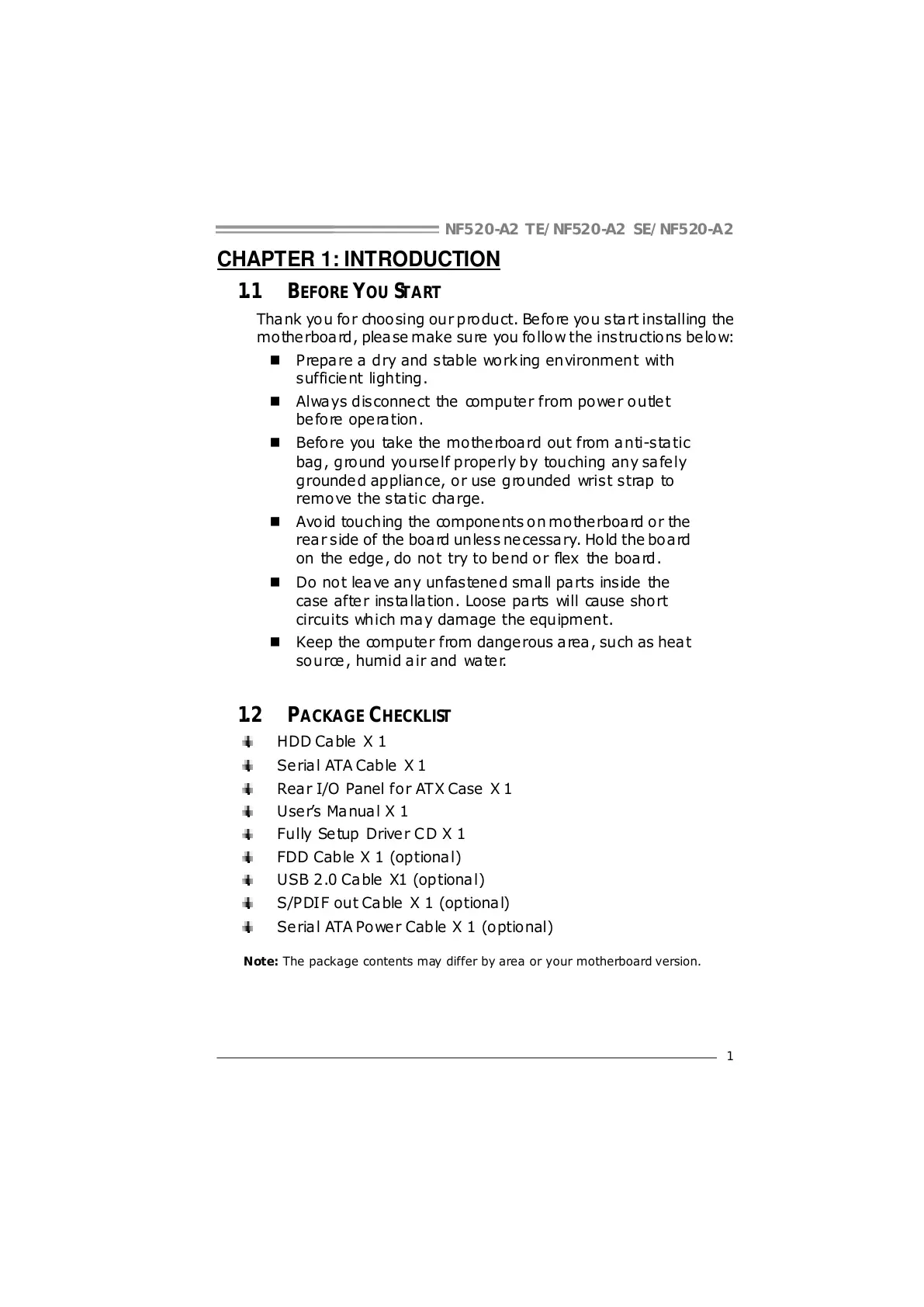 1.2 PACKAGE CHECKLIST