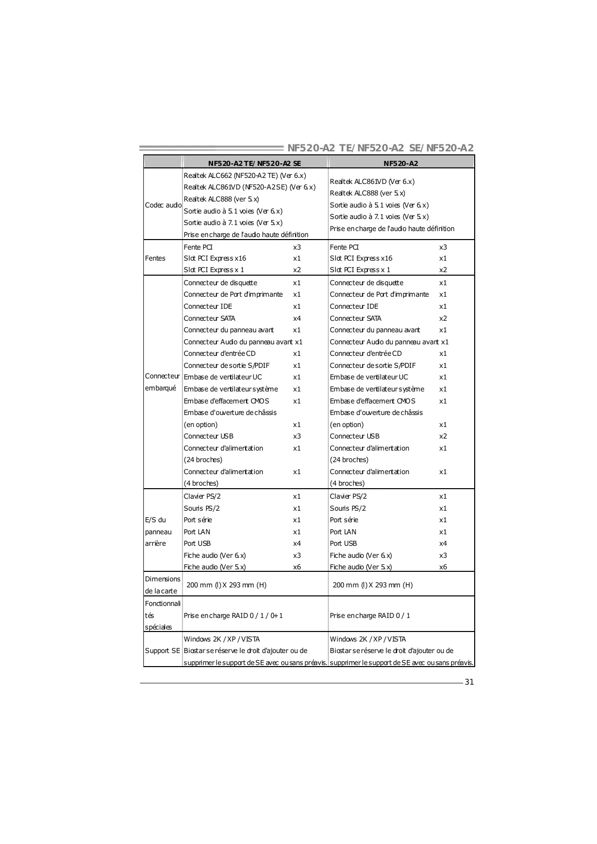 Biostar se réserve le droit d'ajouter ou de