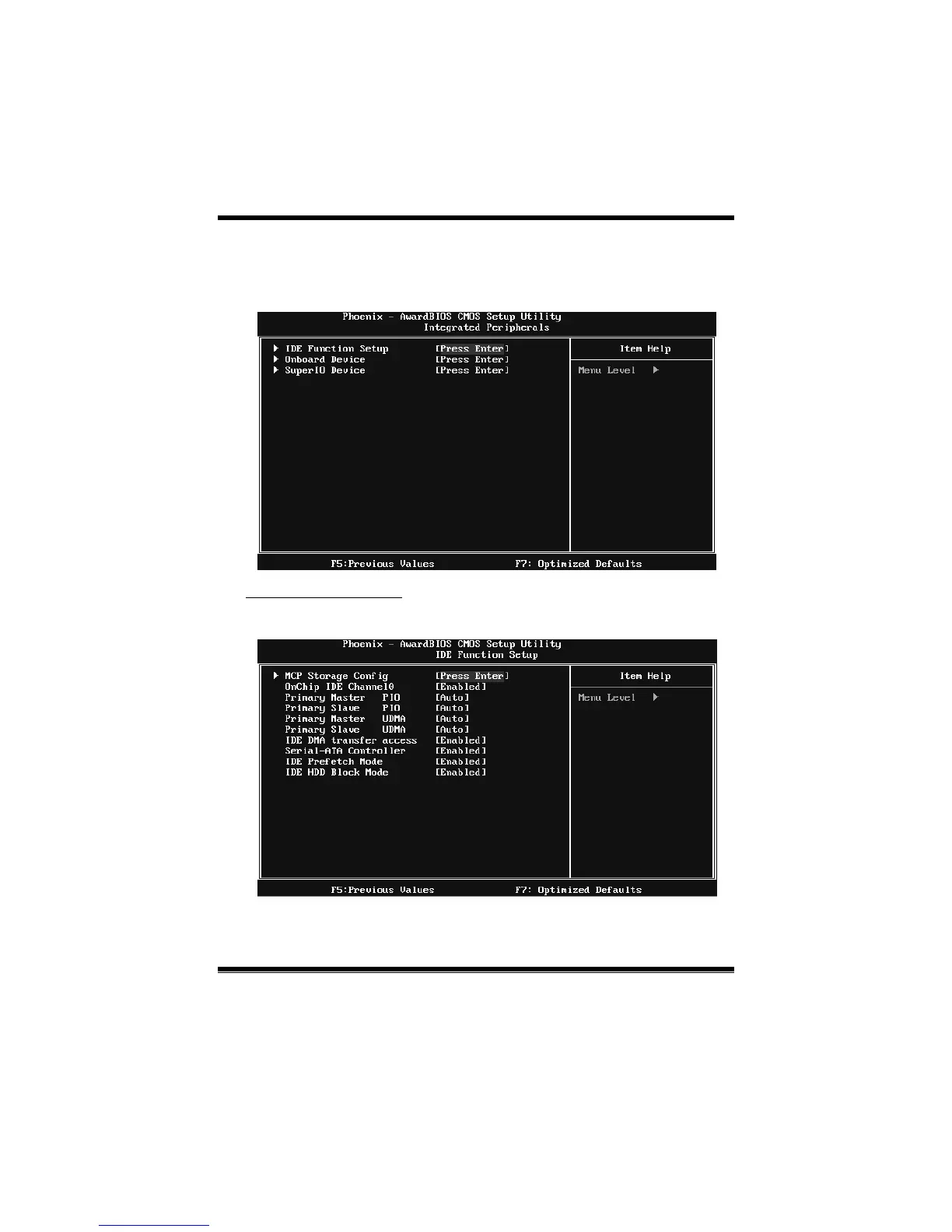 Biostar NF560-A2G - 5 Integrated Peripherals Setup; IDE Function Setup; Onboard Device Setup; Super I;O Device Configuration