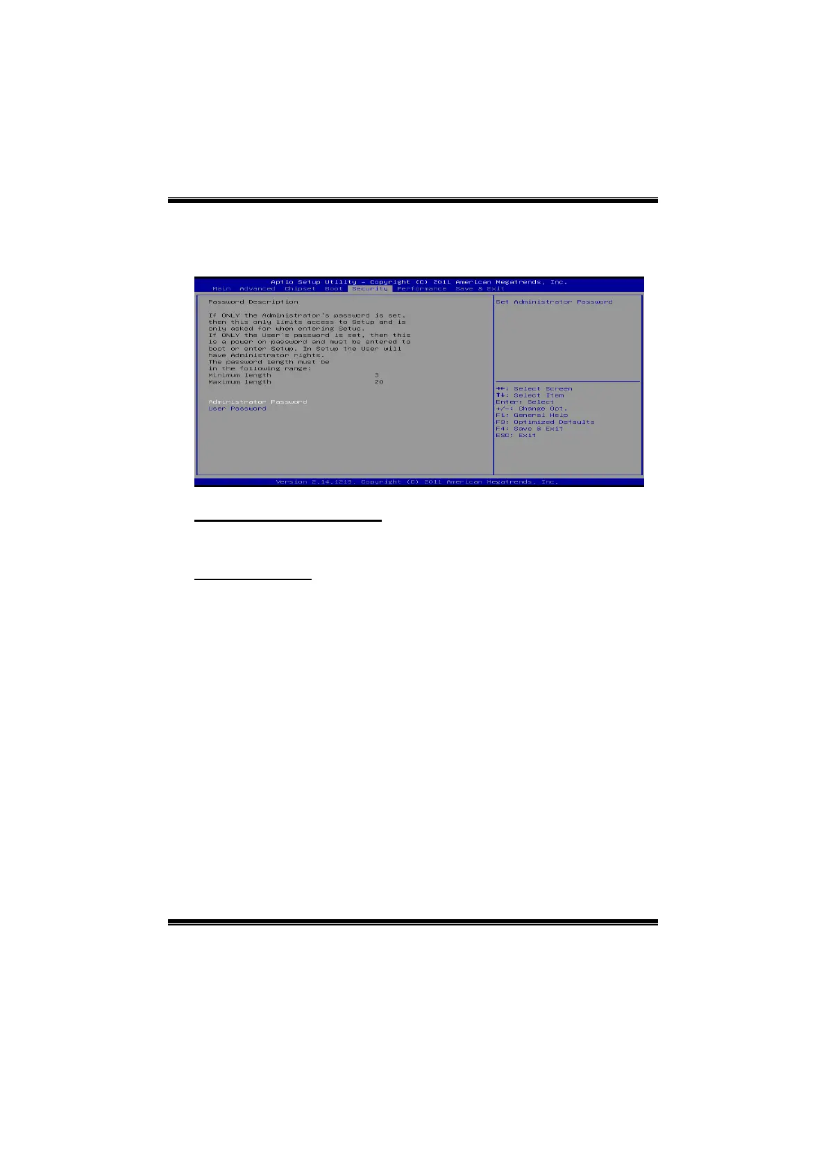 Biostar NM70I-1007U - Security Menu Settings; Administrator Password; User Password
