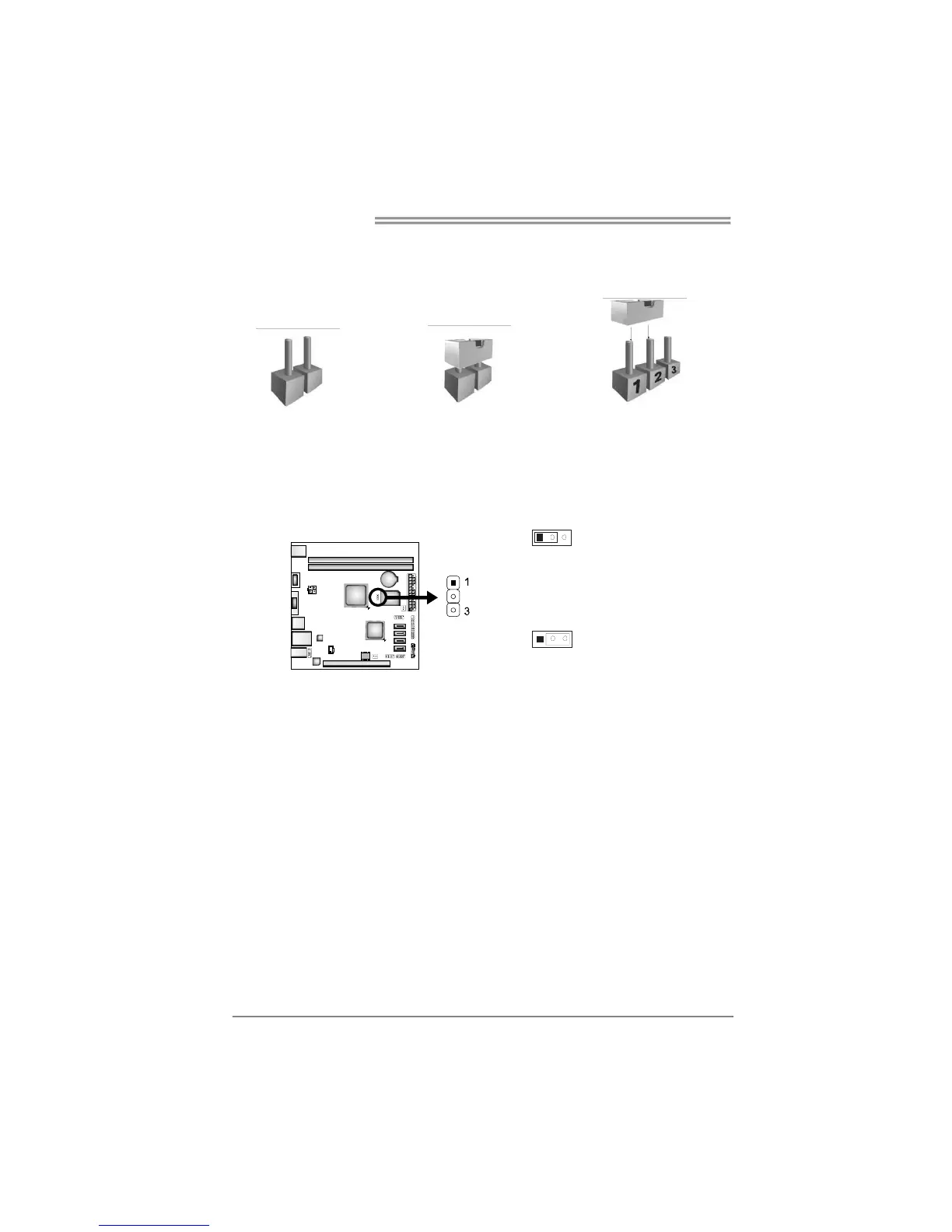 Placing the jumper on pin2-3, it allows user to restore the BIOS safe setting and