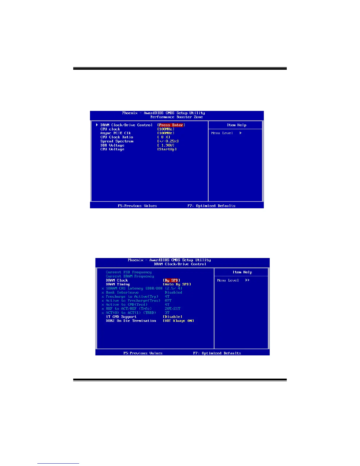 This item controls the DRAM Clock. Highlight “Press Enter” next to the