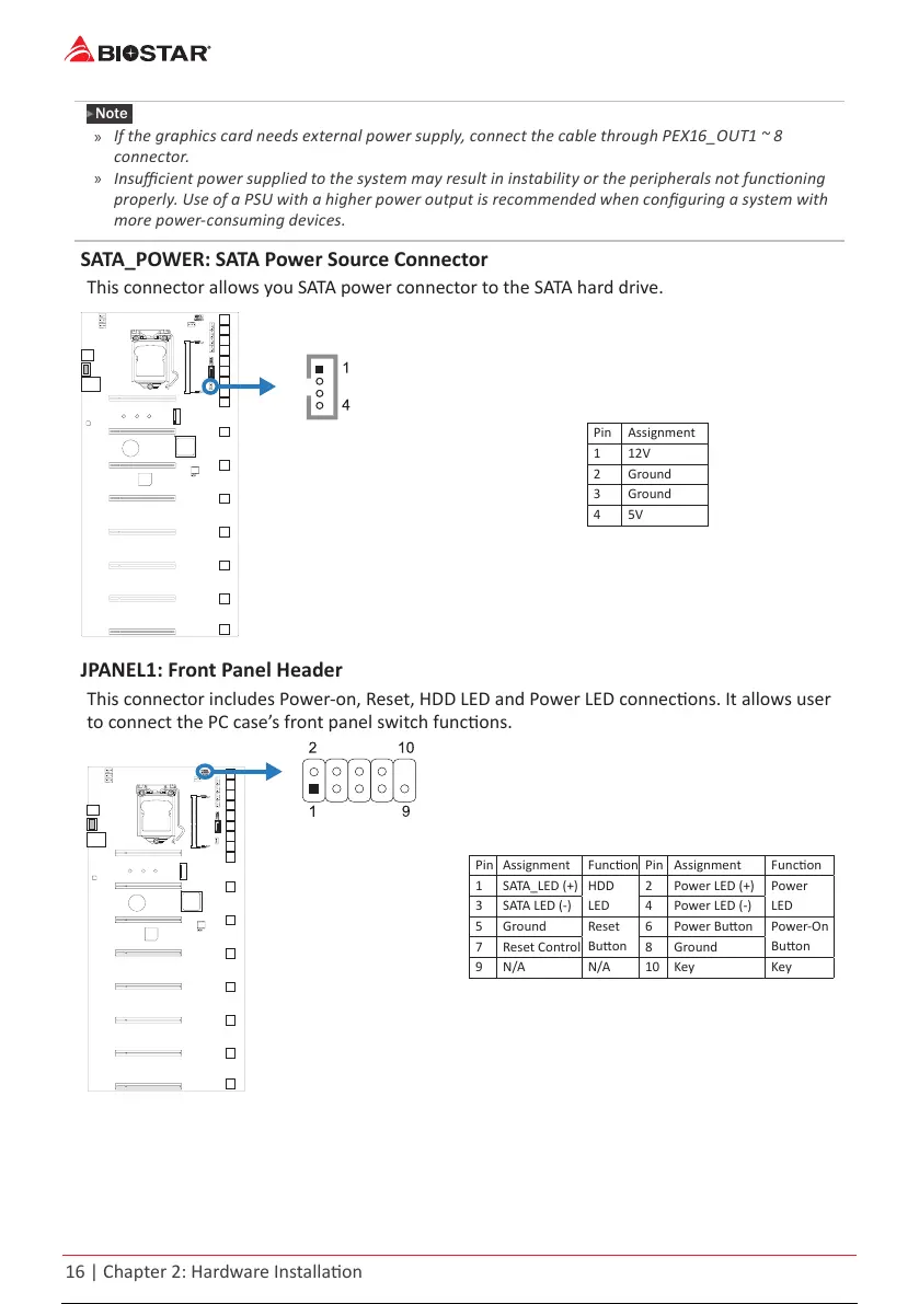 Ifthegraphicscardneedsexternalpowersupply,connectthecablethroughPEX16_OUT1~8